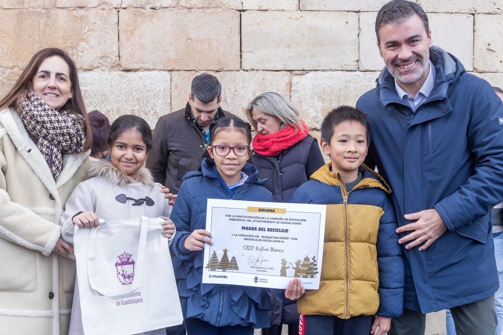 Durante su intervención, la alcaldesa de Guadalajara, Ana Guarinos, ha sorprendido a los asistentes con un cuento navideño que ha dado vida a la esencia del proyecto: «Había una vez una ciudad llamada Guadalajara, donde los árboles no nacían de semillas, sino de la imaginación. Había unos magos muy especiales –vosotros– que decidieron que la Navidad podía ser más bonita si cuidábamos el planeta. Con sus varitas mágicas, que en realidad eran sus manos y su creatividad, transformaron cosas que otros habían tirado a la basura en árboles llenos de vida y esperanza».