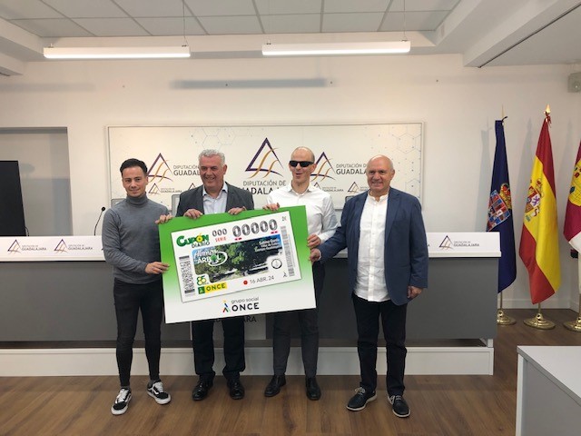 Francisco Marfil Jiménez, director de la Agencia de la ONCE; José Luis Vega Pérez, presidente de la Diputación Provincial y Oriol Fonolla Segura, alcalde pedáneo de Villar de Cobeta, han presentado la iniciativa este martes.