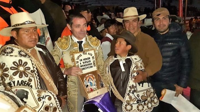 El diestro guadalajareño salió a hombros del coso andino tras cortar las dos orejas de su segundo toro. Estaba acartelado junto al portugués Nuno Casquiha, quien también logró los dos trofeos en el segundo de su lote y el torero local Luis López, que cortó una oreja del sexto.