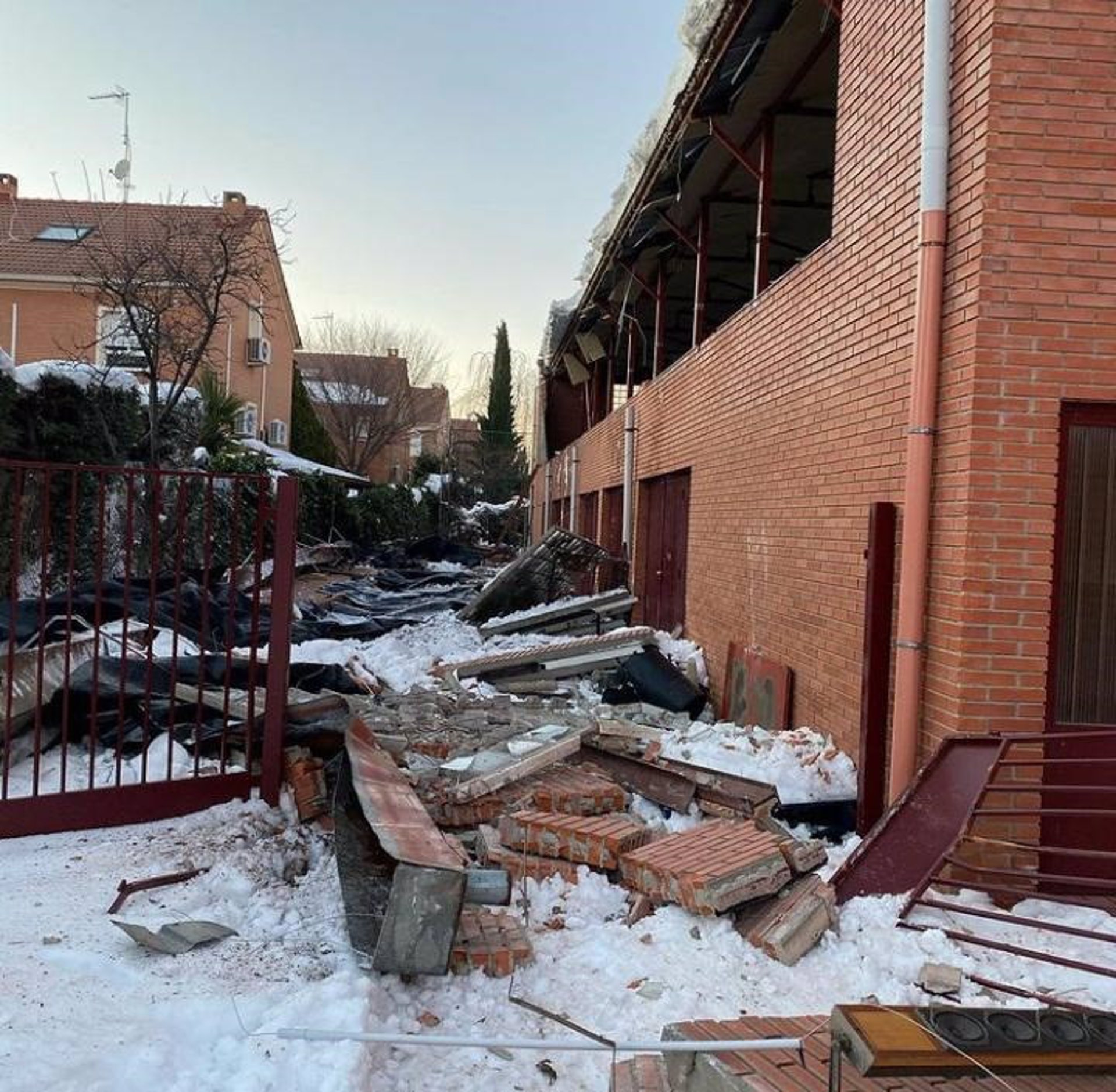 La intensa nevada provocada por el temporal ‘Filomena’ ha causado el desplome de una de las paredes del polideportivo del colegio ‘Giovanni Antonio Farina’ de Azuqueca de Henares. El suceso ha causado importantes daños materiales, que de momento van a afectar al desarrollo normal de las las clases, ya que al menos seis aulas del centro escolar cercanas al recinto deportivo, donde estudian unos 135 alumnos, se van a ver afectadas.