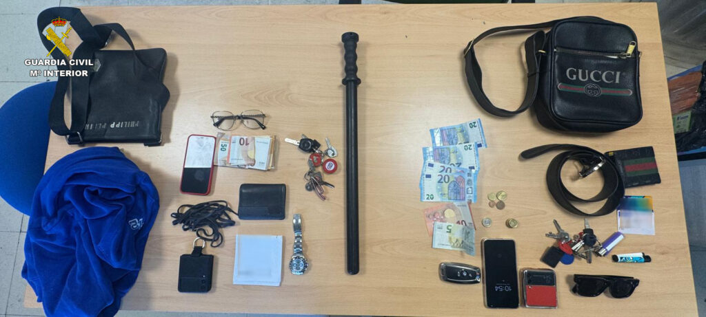 Como resultado del registro practicado en el coche, se localizó una defensa semirrígida (similar a las utilizadas por la Fuerzas y Cuerpos de Seguridad del Estado), con la que habrían golpeado a la víctima. También se intervinieron más de 2.000 euros en efectivo, teléfonos móviles y otros efectos.