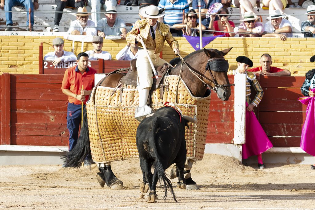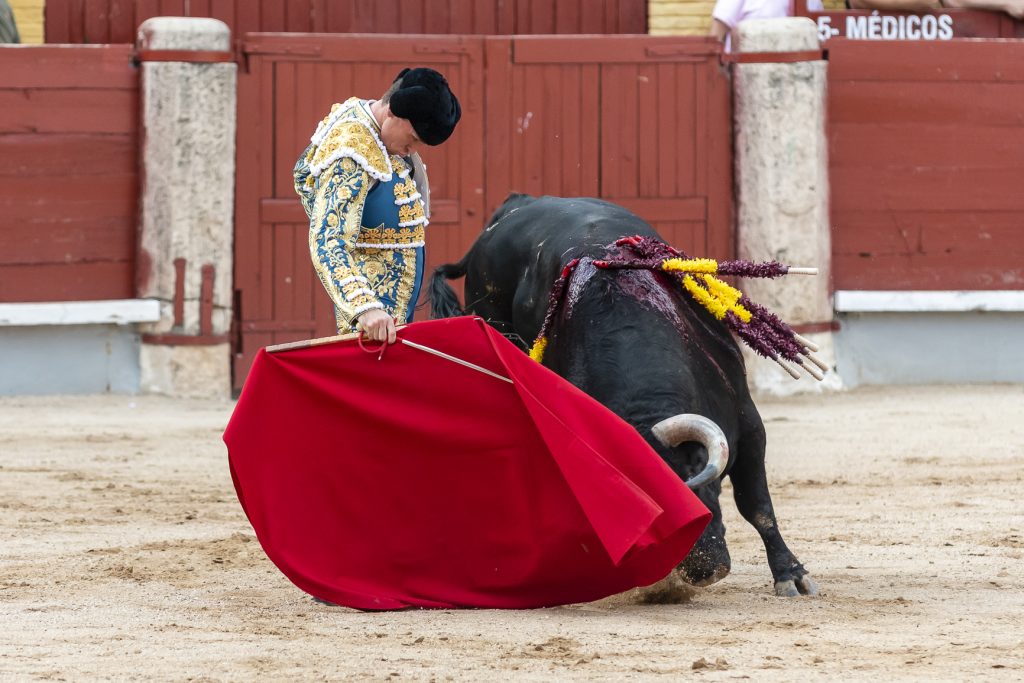 El último cartucho, ante el sexto, de mayor presencia, enmorrillado. Brindó su faena a la ganadera alcarreña Sandra Sopeña. Al de José Vázquez lo recogió de hinojos desde los medios, con dos cambiados por la espalda. Aquello parecía eclosionar con un público a favor, pero poco a poco el toro se fue apagando y se los fue robando de uno en uno sin que la faena tomara vuelo: dos pinchazos y siete descabellos.