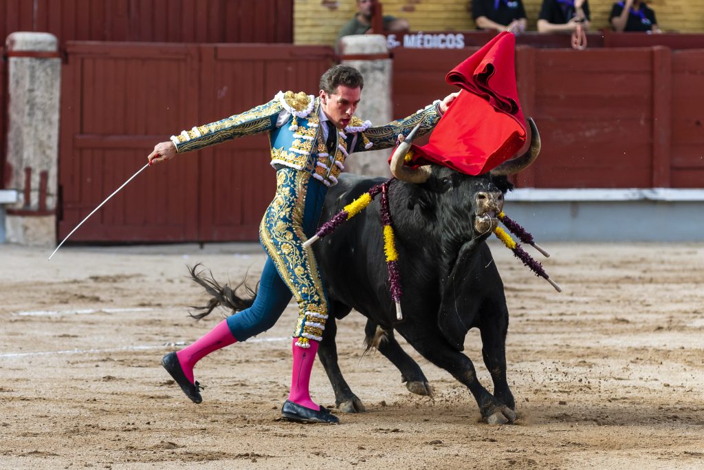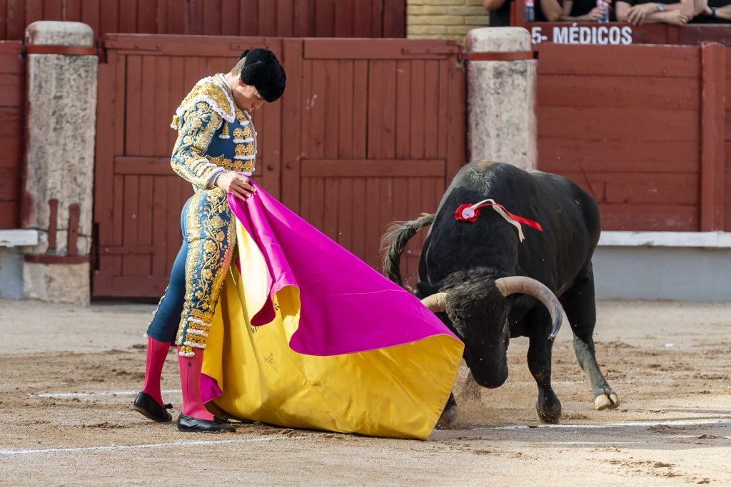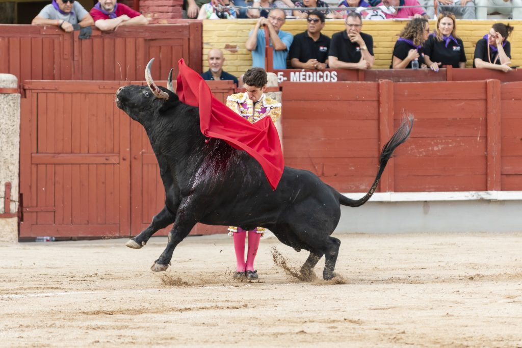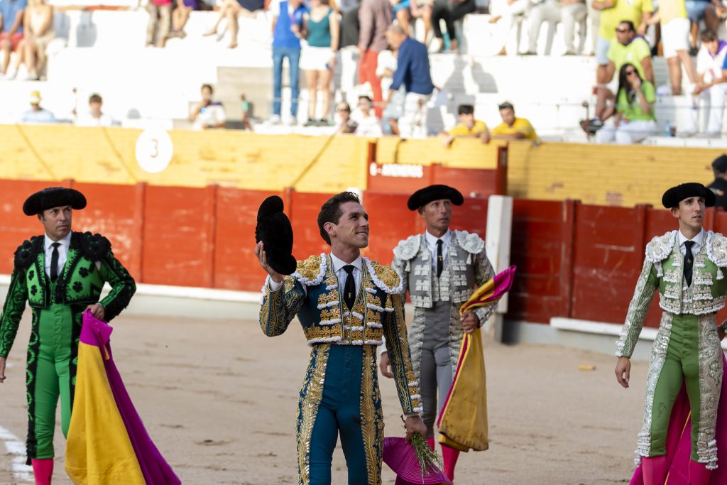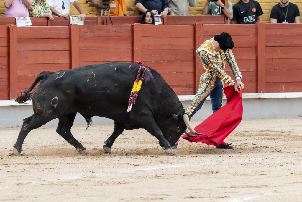 Ginés Marín lanceó a la verónica con cadencia y ritmo a su primero, tras un picotazo, ni para un análisis sangró el toro. Quitó por Tafalleras el jerezano. Susto en banderillas, fue cogido por la taleguilla el banderillero Fernando Pérez a la salida del par, tras ser examinado en la enfermería tenía un varetazo en el muslo derecho. Brindó Ginés al respetable una faena que comenzó doblándose por abajo, nobleza y celo en las primeras series, Ginés le dio espacio al toro entre serie y serie, le costó más pasar por el pitón izquierdo y el toro se fue desinflando terminando rajando. Dejó una estocada corta algo desprendida, tras una leve petición fue ovacionado.