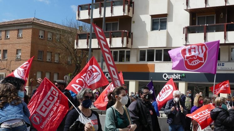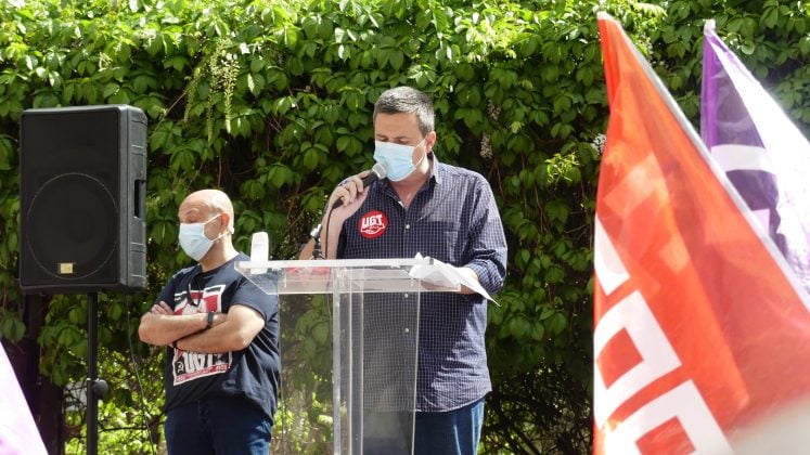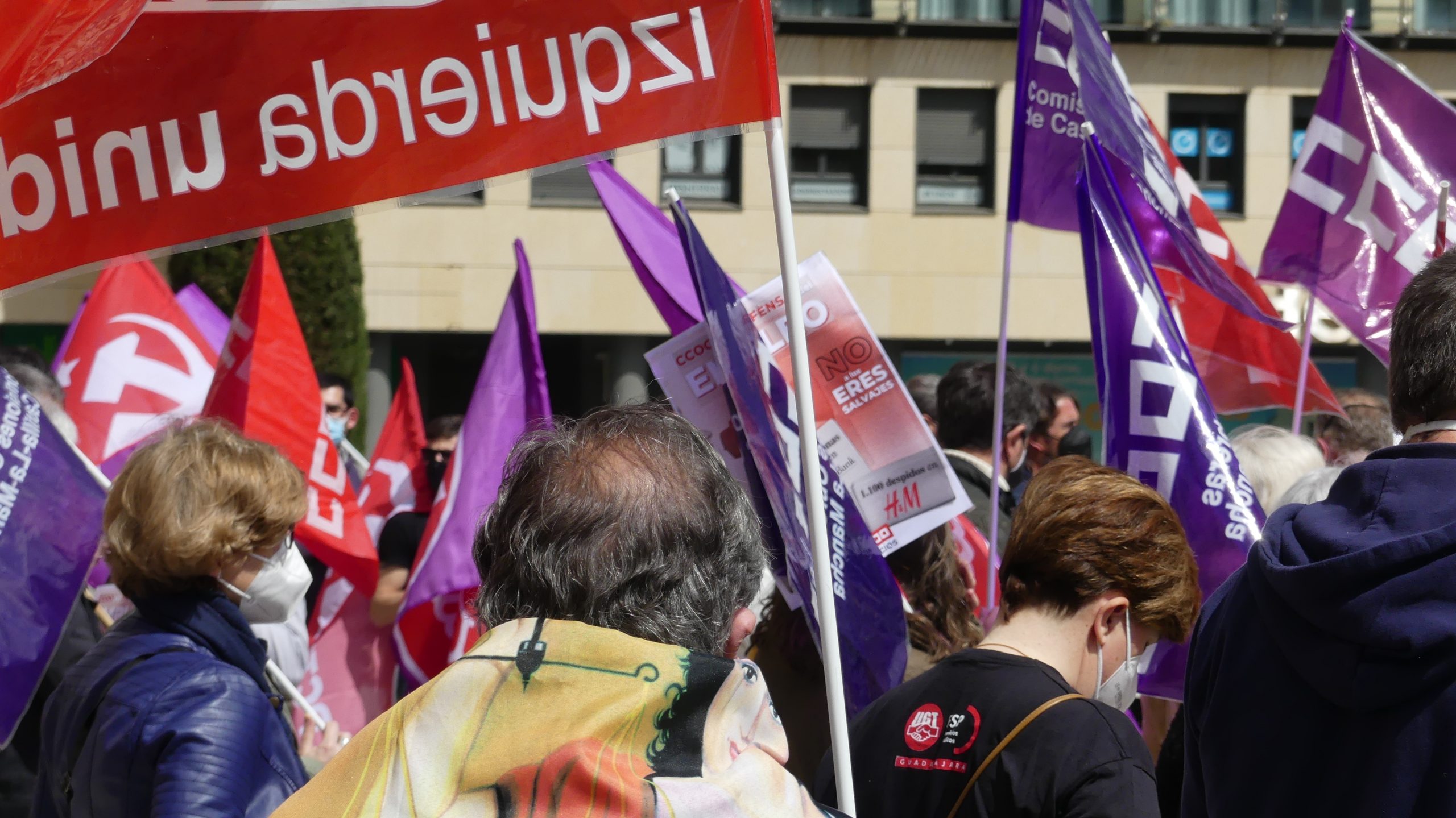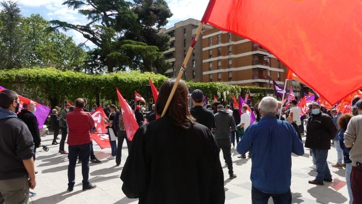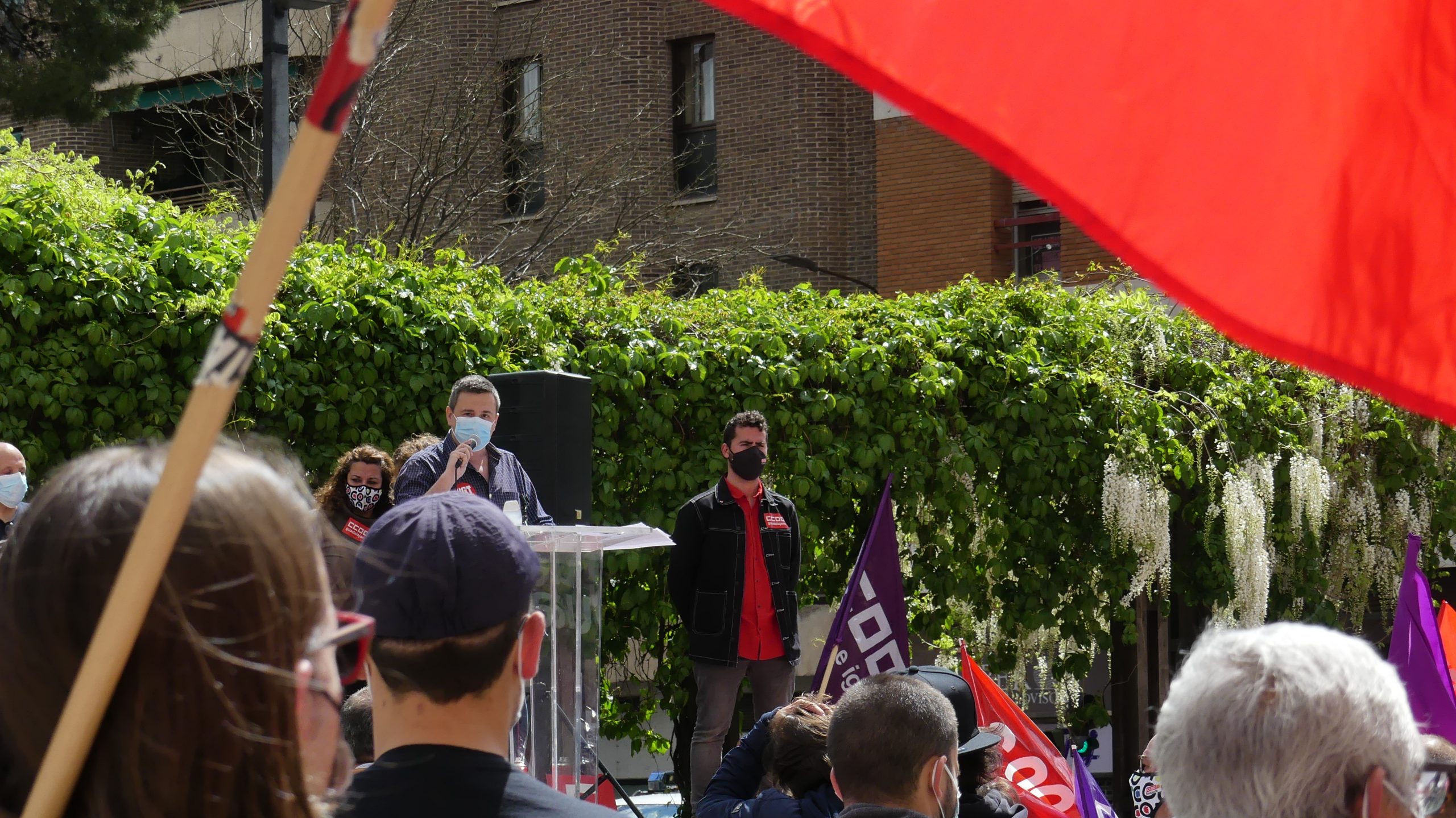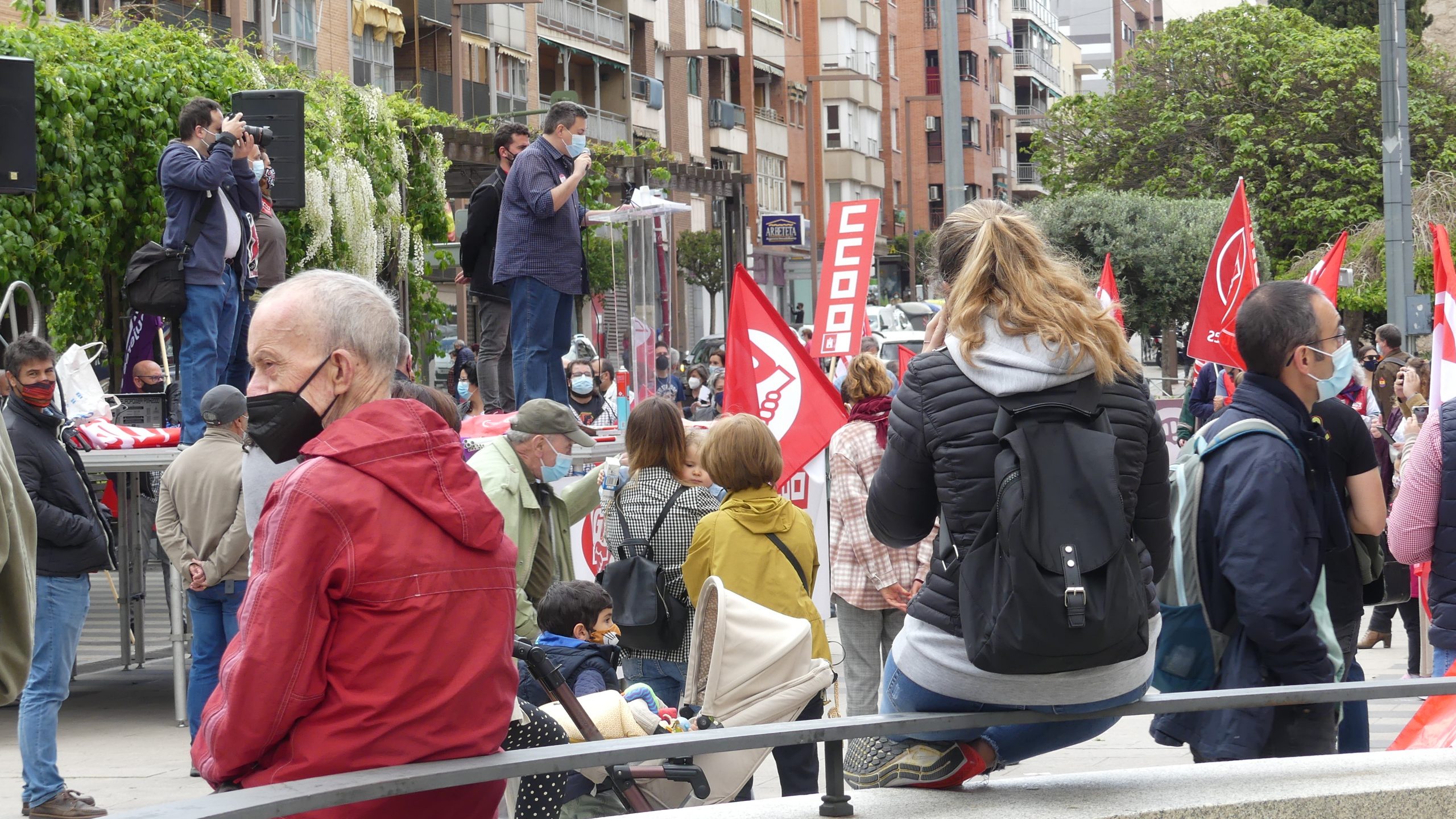Los sindicatos de clase, CCOO y UGT esencialmente, optaron esta vez por una concentración, en la que estrenaban secretarios provinciales. Ambos estaban llamados a subirse al estrado, aunque el que primero lo ha hecho ha sido a las 12 del mediodía un trabajador de la Sanidad. Todavía está muy fresco todo lo ocurrido en el sistema de salud como para sorprenderse por esta elección.
