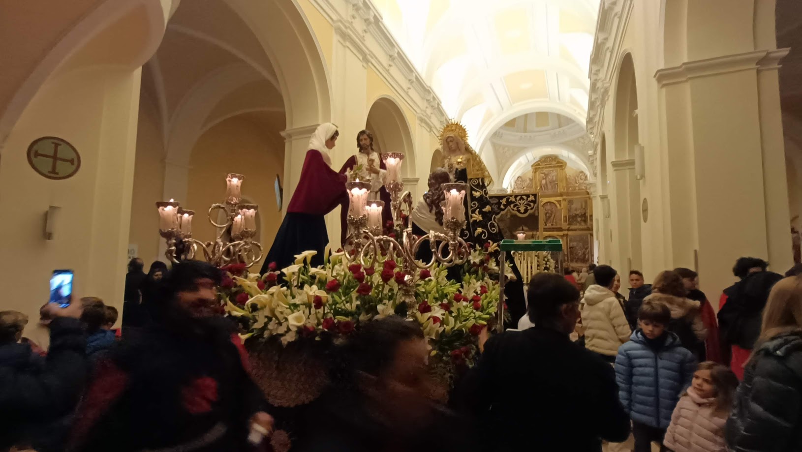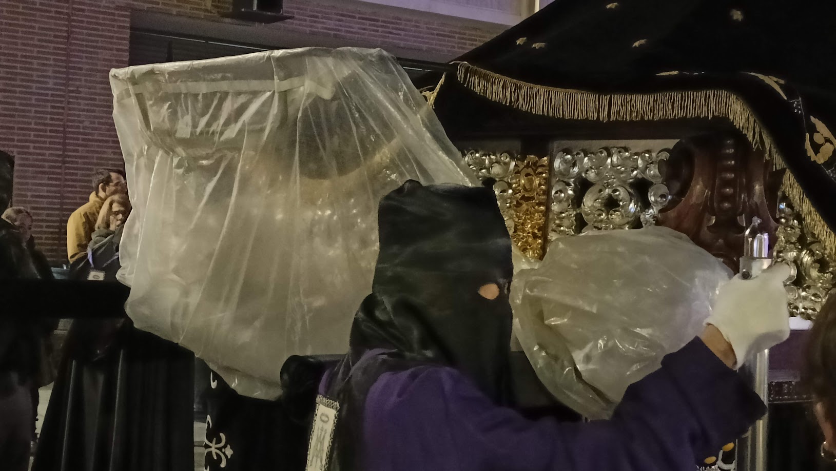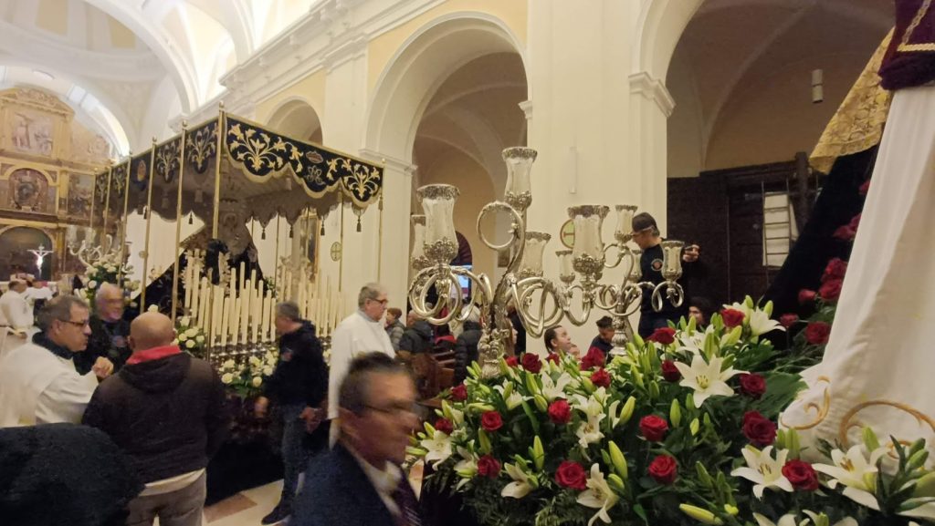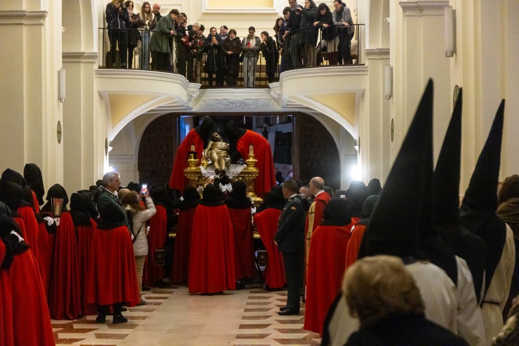 Las nubes pararon de descargar durante unas horas, dando paso a un frío cada vez más intenso. Con una hora de retraso sobre lo anunciado en el programa, desde la concatedral se fueron sumando al recorrido pasos y cofrades. Los políticos esperaban pacientemente, al igual que cientos de fieles y curiosos.