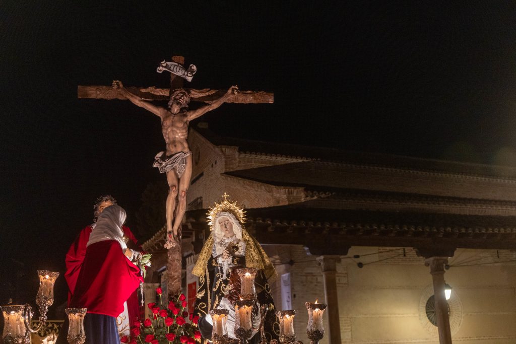 Han participado la Cofradía de la Pasión del Señor con los pasos del Cristo de la Expiación, La Piedad y Nuestro Padre Jesús de la Pasión; la Cofradía de Nuestra Señora de los Dolores con los pasos del Calvario en la Quinta Palabra y la Virgen de los Dolores; la Cofradía del Cristo Yacente del Santo Sepulcro con su imagen titular y la Cruz Desnuda de Jerusalén y, asimismo, la Hermandad de la Soledad con su imagen titular y el Cristo del Consuelo.