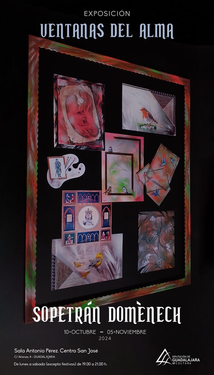 La artista plástica guadalajareña Sopetrán Domènech vuelve a exponer, tras un periodo de cinco años, a partir de este jueves, 10 de octubre, y hasta el próximo 5 de noviembre, en la Sala de Arte Antonio Pérez del Centro San José de la Diputación de Guadalajara. Con esta muestra, en la que Sopetrán Domènech presenta su nueva obra, titulada ‘Ventanas del Alma’, la artista explora nuevas formas de expresión.