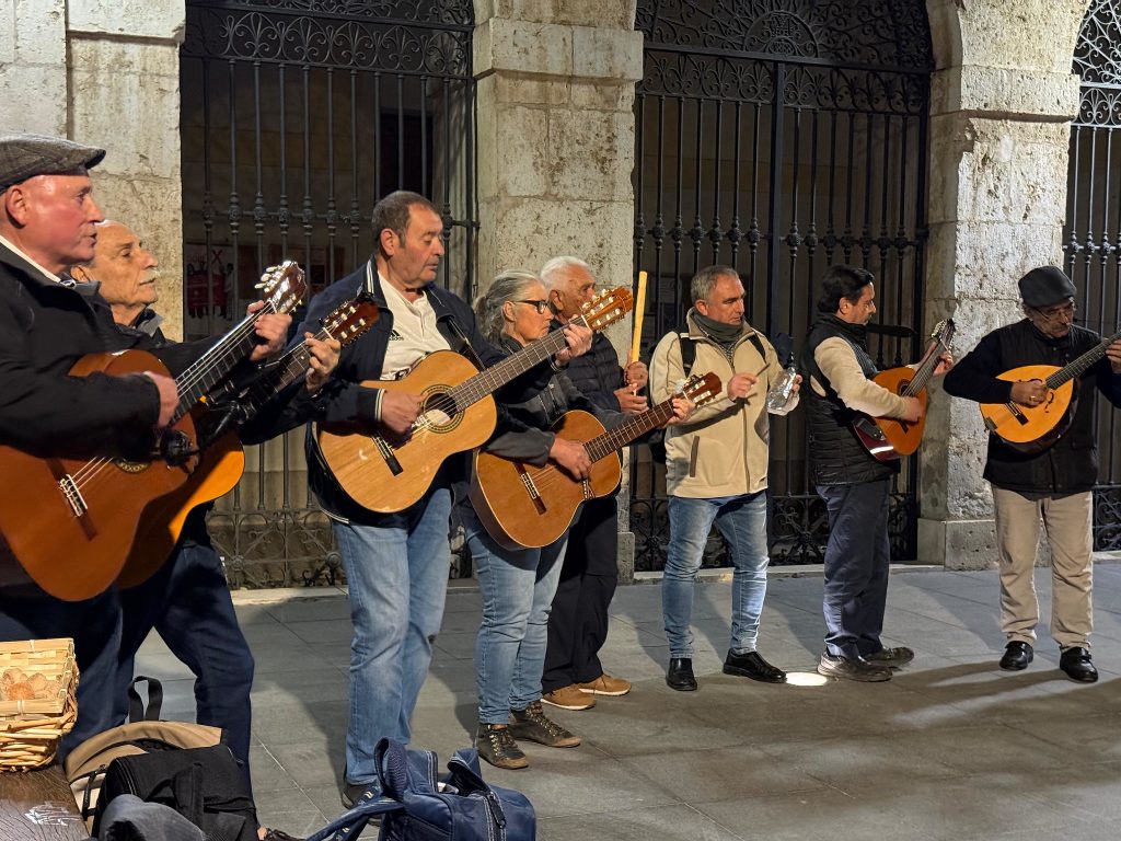 La Ronda de Mayos que recorrió este sábado las plazas de Jardinillo, San Esteban, General Prim, Concejo, Mayor y Don Pedro, desde las diez de la noche hasta bien pasada la medianoche, con la participación de alrededor de un centenar de vecinos.