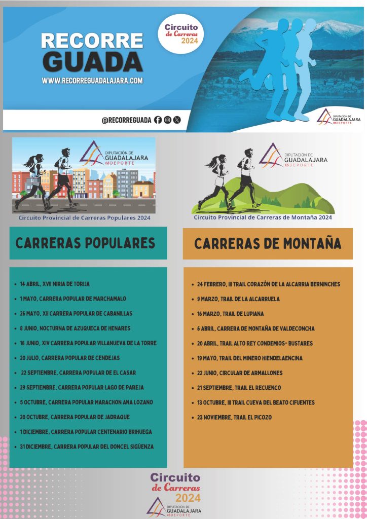 Las inscripciones se realizan a través de la página web www.recorreguadalajara.com, en la que puede consultarse también toda la información sobre calendario de carreras, reglamentos, resultados y noticias.