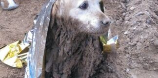 Salvado de morir un perro, atrapado durante muchas horas en el...