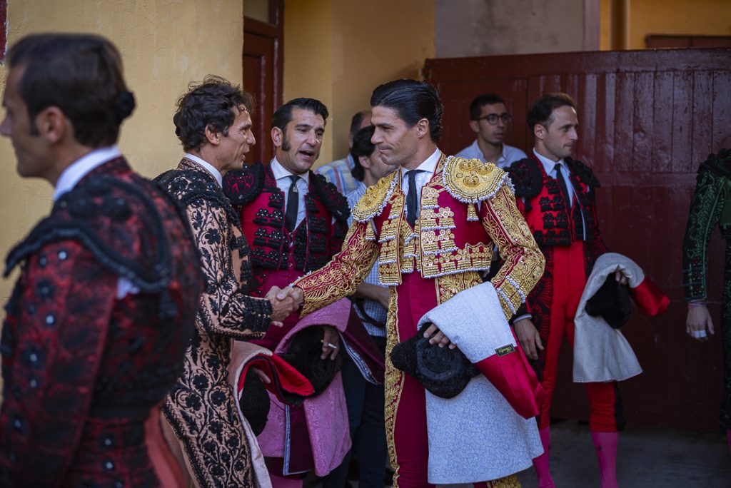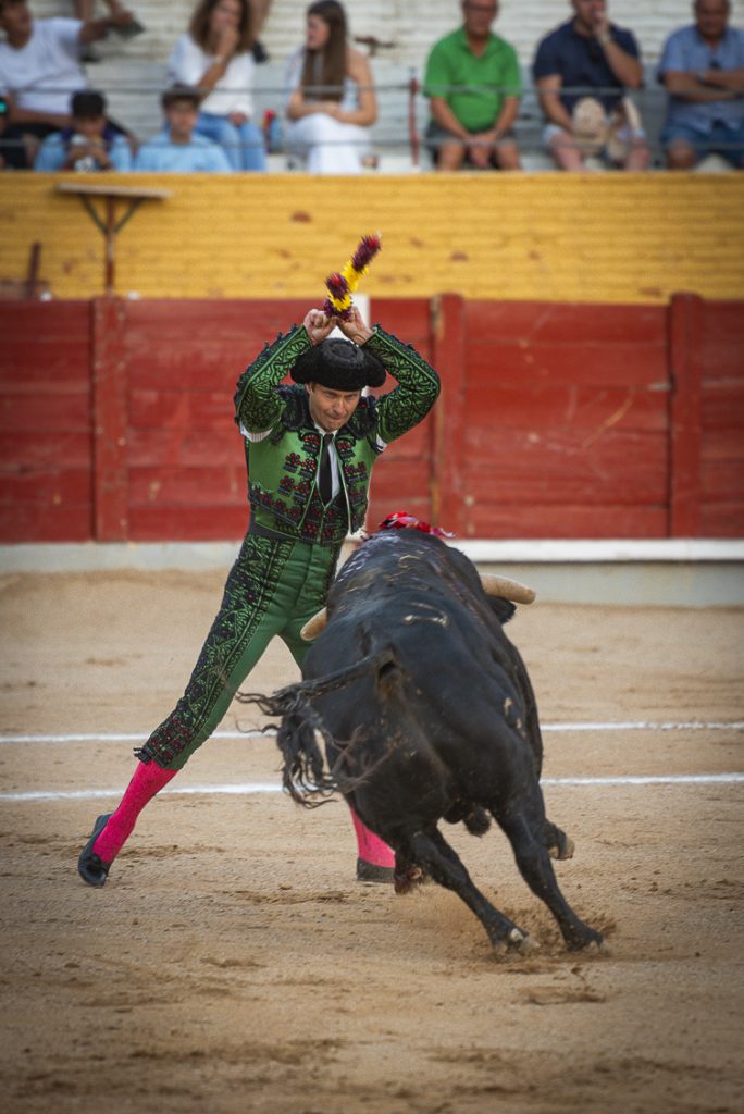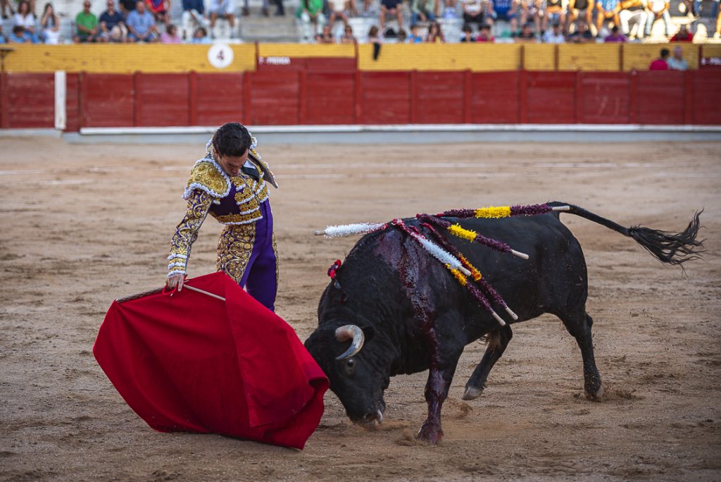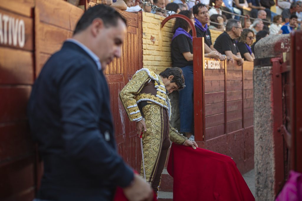 Al sexto le faltó poder, pero tuvo nobleza. Por momentos entró en la muleta del toledano, que planteo una faena medida de mucho ajuste en muletazos de series cortas por los dos pitones en la distancia corta. Una faena medida y reposada para poner el punto final con un desplante en la cara del toro, cuando sonaban los cascabeles de las mulas. Dejó una estocada caída y tras la petición del público, cortó otro trofeo, que le daría el pasaporte para salir por la puerta grande de Las Cruces.