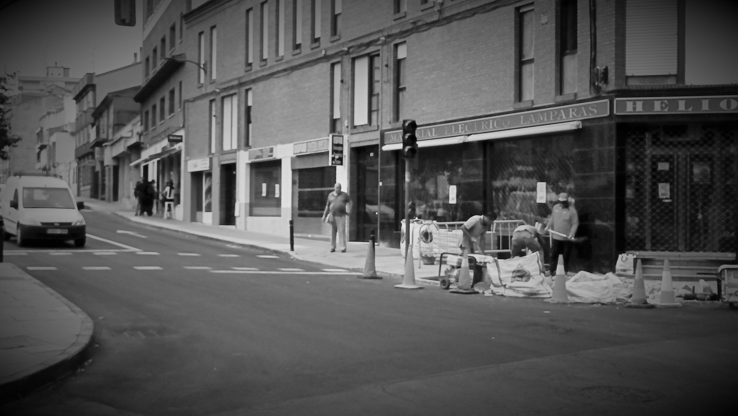 Un día después de quedar oficialmente abierta al tráfico la desdoblada calle de Ramón y Cajal, los obreros seguían allí. Aun siendo festivo local, por ser el día de la Patrona de la ciudad, una cuadrilla se afanaba en alguna de las muchas tareas aún pendientes en el acerado de esa vía.