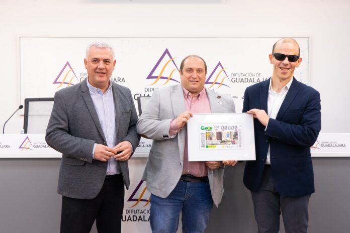 El director de la Agencia de la ONCE, Francisco Marfil; el alcalde de Molina de Aragón, Francisco Javier Montes, y el presidente de la Diputación Provincial de Guadalajara, José Luis Vega, han presentado este cupón.