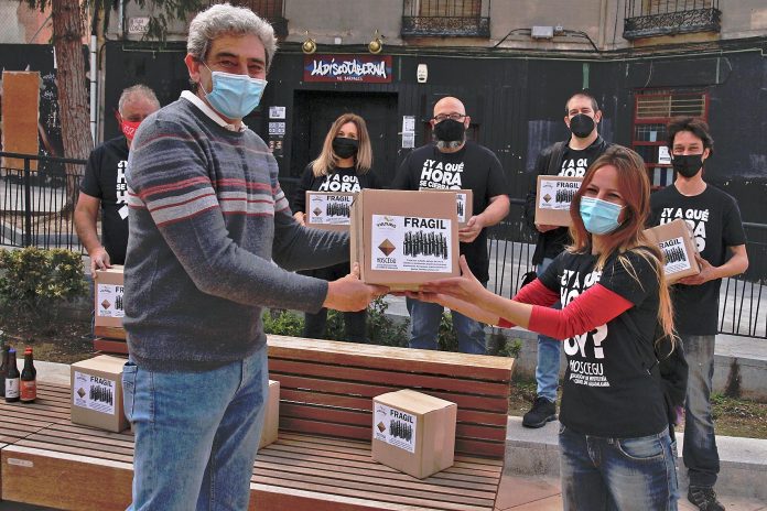 Los productores de la cervecera artesana Vulturis, que se fabrica en Quer, como muestra de apoyo al comercio de proximidad, han hecho entrega este miércoles a la Asociación de Hostelería del Centro de Guadalajara (HOSCEGU) de una serie de lotes de las distintas cervezas que produce para que, a su vez, las distribuya de manera gratuita entre las empresas asociadas a este colectivo alcarreño.