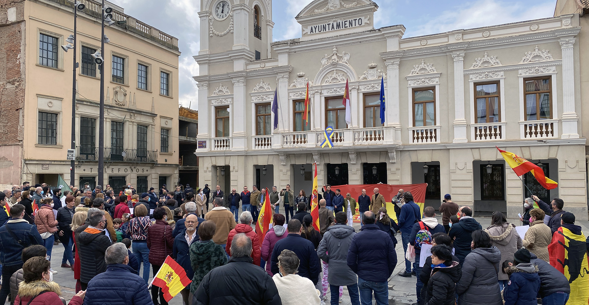 Al igual que en Madrid y en otras provincias españolas, Vox llamó a una concentración el mediodía del sábado en la Plaza Mayor de Guadalajara.