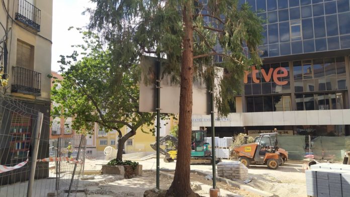 Las obras de la céntrica plaza del Concejo avanzan, con algunas modificaciones sobre el proyecto original aceptadas para conseguir retener a la empresa adjudicataria de las mismas y con la eliminación, ya consumada, de los dos únicos árboles que sobrevivían al movimiento de las máquinas.