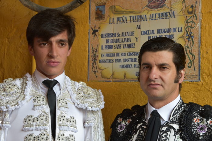 No puede pintarse una cara de mayor felicidad que la que se dibujaba en el rostro de Ángel Téllez en el momento de entrar en la furgoneta blanca, camino del hotel. Durante un buen rato, le habían paseado a hombros, antes y después de salir por la puerta grande, esa que da recuerdo permanente en Guadalajara al malogrado Fandiño. Tanto fue el entusiasmo de los muchos jóvenes que llevaban a su paisano y amigo en volandas que acabaron chocando contra la centenaria verja del colegio "Rufino Blanco", frente al coso de Las Cruces.